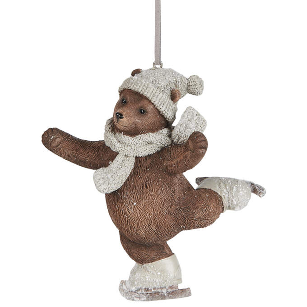 Deko-Anhänger Bär mit Schlittschuhen für den Weihnachtsbaum oder die sonstige Winterdekoration Material: Polyresin Länge 10 cm