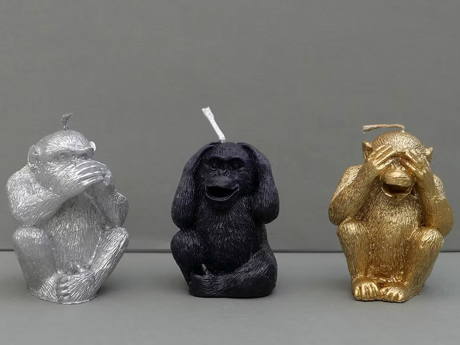Die drei weisen Affen verkörpern das Prinzip, sich von negativen Dingen fernzuhalten, indem man sie nicht sieht, hört oder ausspricht (nach einem Sprichwort von Konfuzius).