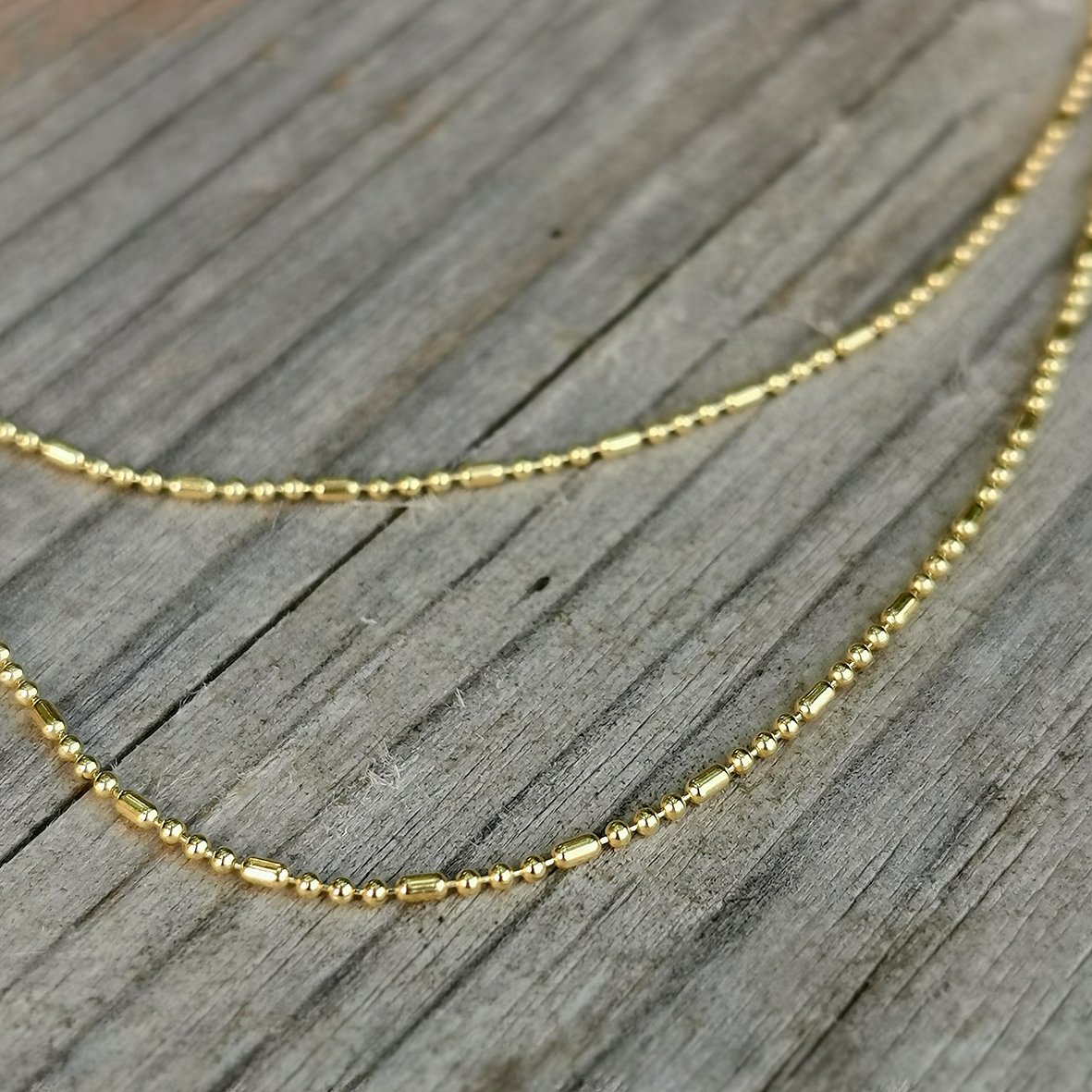 feine Kette aus Kügelchen und Stäbchen Silber vergoldet von Argento Furioso Dicke 1 mm in zwei Längen erhältlich: verstellbar 42-45 cm verstellbar 50-55 cm