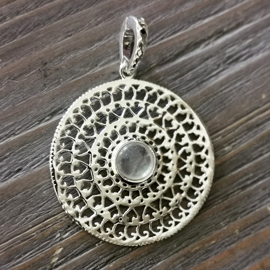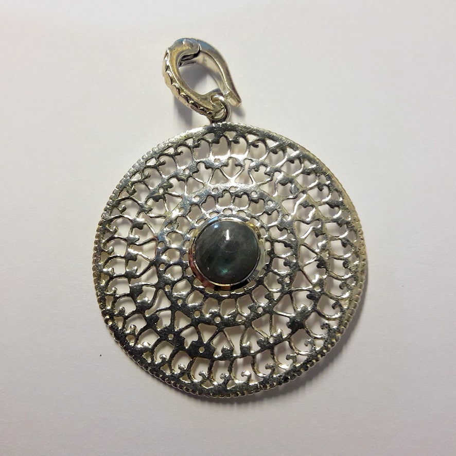 Halsanhänger Element mit Edelstein Labradorit oder Mondstein Silber 925 von Argento Furioso Durchmesser 4 cm, Länge 5.5 cm