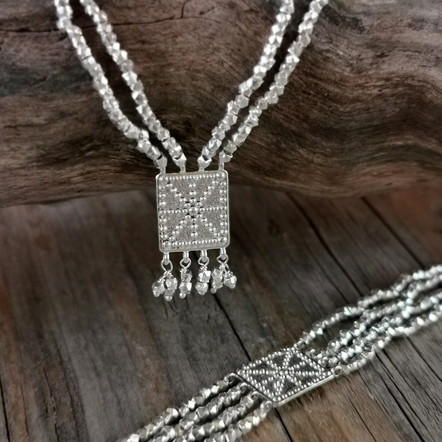 Halskette mit Rechteck Silber