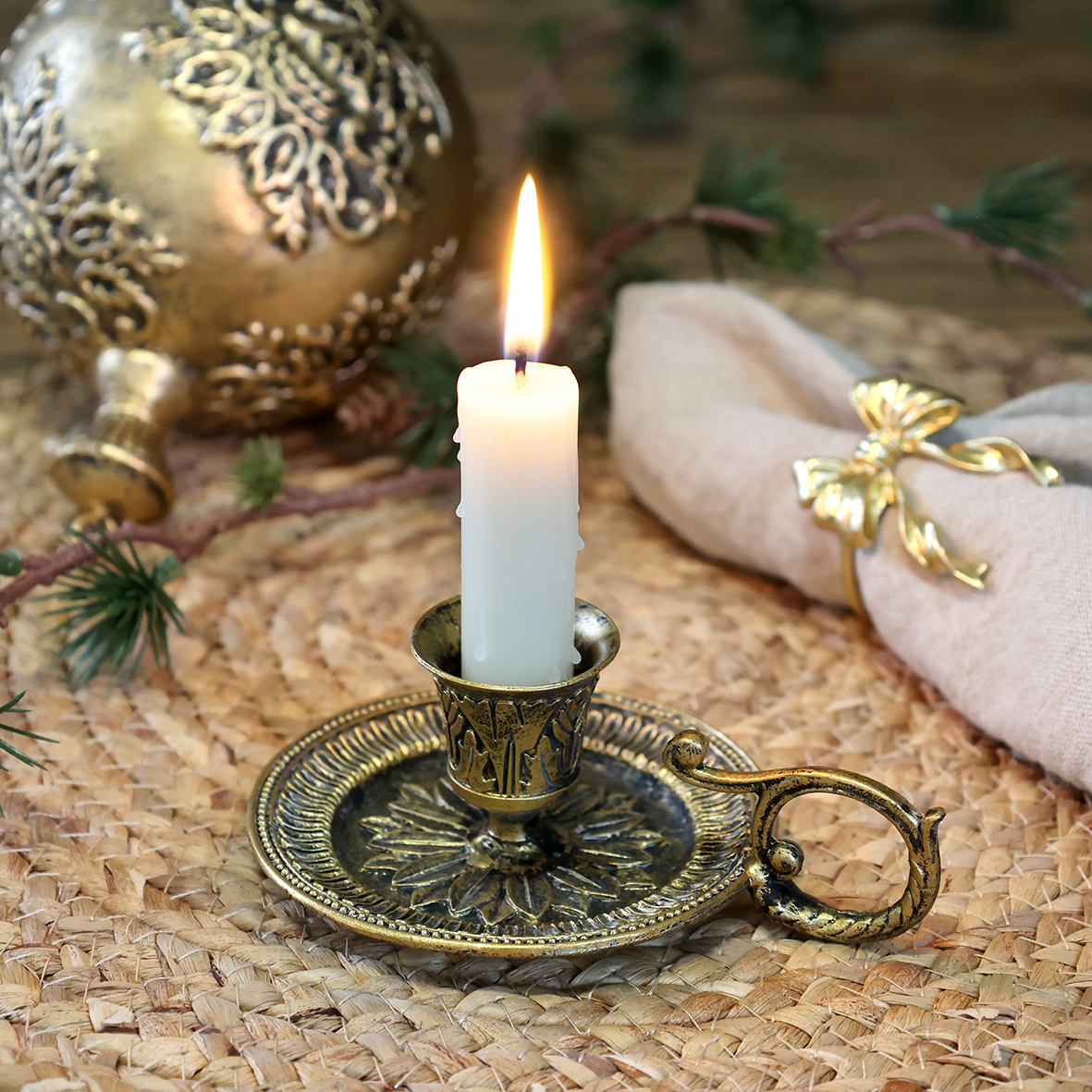 Kammerleuchter Gold Material Zinn, Farbe Messing 12.5 x 9.5 cm für Stabkerzen mit Durchmesser 2-2.2 cm