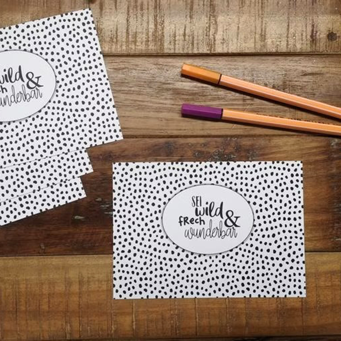 Postkarte mit Aufschrift „Sei frech, wild & wunderbar“ Format A6, Rückseite leer 300g/m2, ÖKO-Naturpapier
