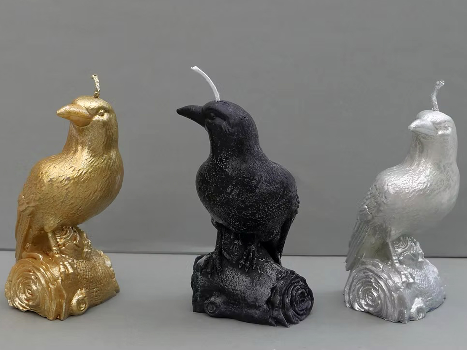 schwarze Rabenkerze Höhe 13 cm Schweizer Handarbeit von kitschi russfrei, kann tropfen