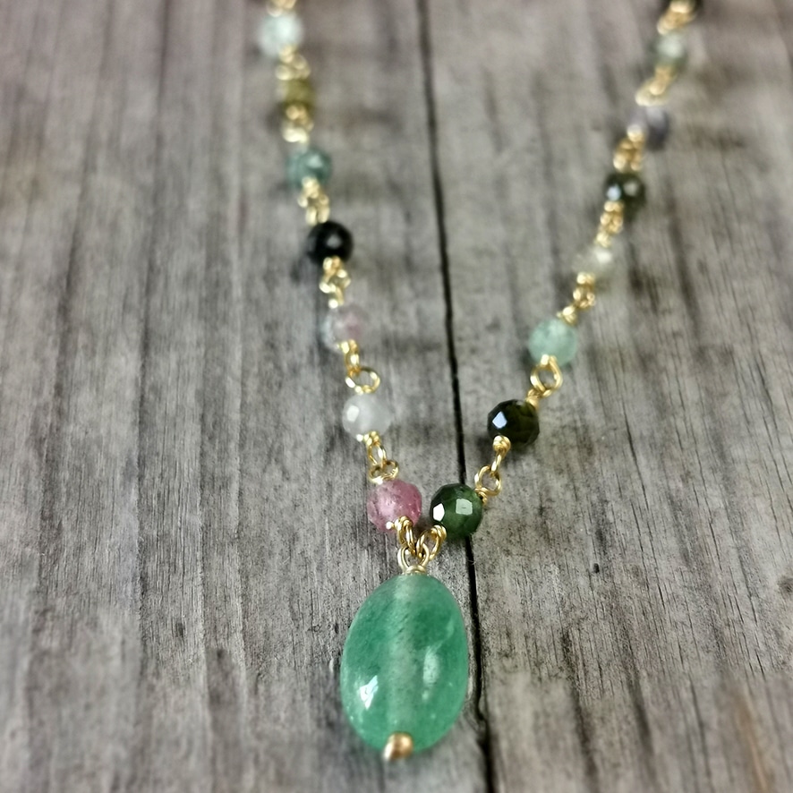 Kette mit ovalem Anhänger Turmalin Silber vergoldet von Argento Furioso Länge verstellbar 65-70 cm