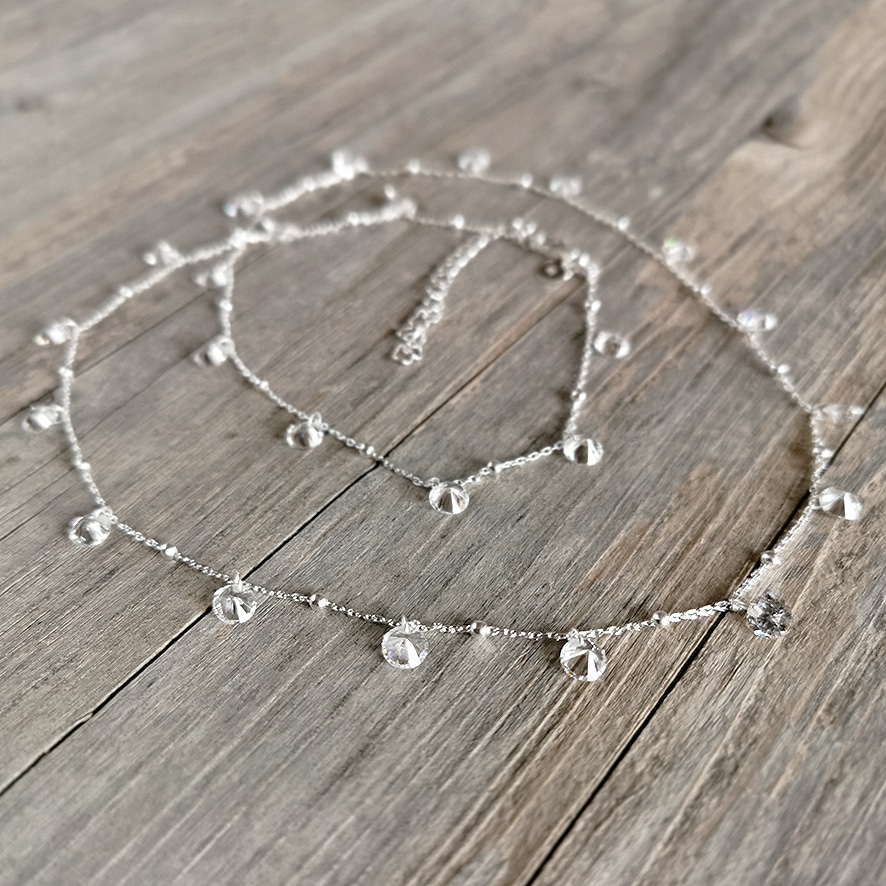 Kette mit runden Zirkonia-Steinen Silber 925 von Argento Furioso Steindurchmesser 0.5 cm in verschiedenen Längen erhältlich 55 – 60 cm 60 – 65 cm