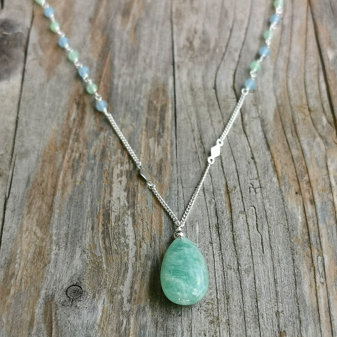 Kette in Blautönen mit Tropf Amazonit Silber 925 von Argento Furioso Länge verstellbar 49-54 cm