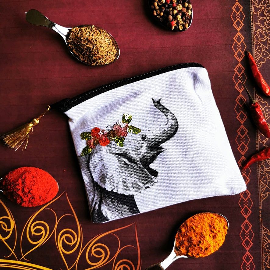Stoff mit Reissverschluss, Pailletten und goldener Quaste