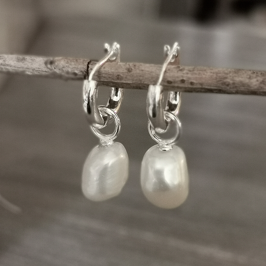 Kreolen mit Perle Silber 925 von Argento Furioso Kreolen-Dicke: 3 mm, Durchmesser: 1 cm Perlengrösse: ca. 0.8 x 1 cm, Gesamtlänge: 2.5 cm für einen schönen Strandlook