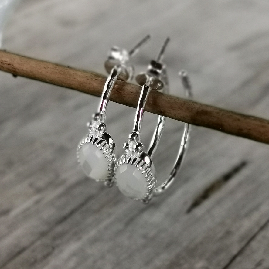 Kreolen mit Stein Silber 925 von Argento Furioso Durchmesser 2.5 cm mit verschiedenen Edelsteinen erhältlich