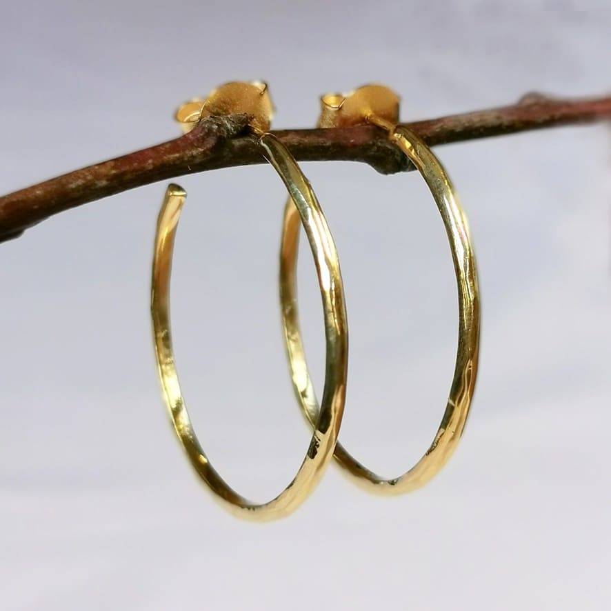 Kreolen mit Struktur flach Silber vergoldet von Argento Furioso Dicke 2 mm in verschiedenen Grössen erhältlich