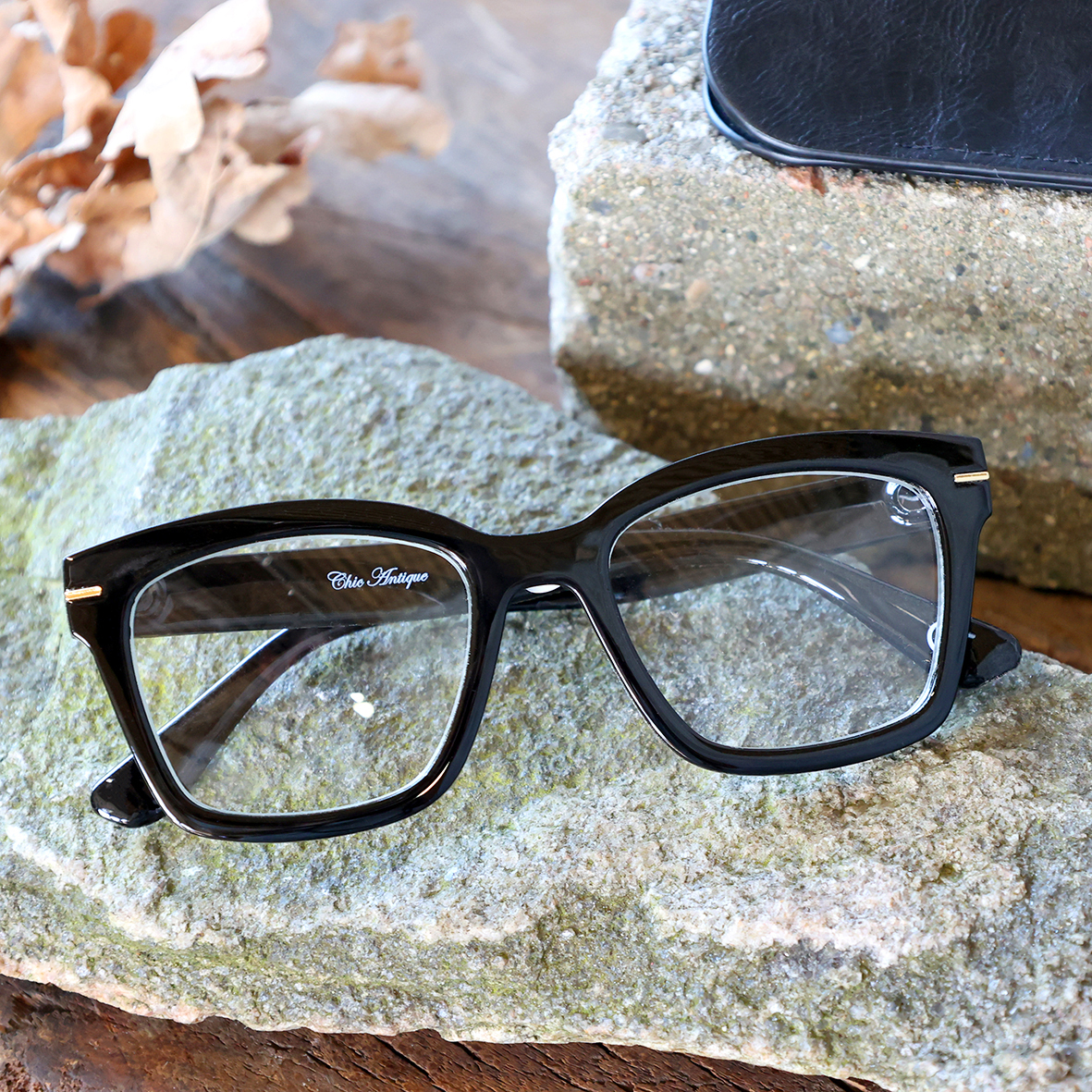 Lesebrille schwarz mit Golddekor inklusive Etui in verschiedenen Sehstärken erhältlich: + 1.0 / + 1.5 / + 2.0