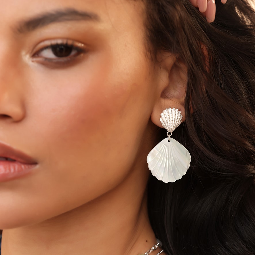 Muschel in Silber als Ohrstecker mit Hinterteil
