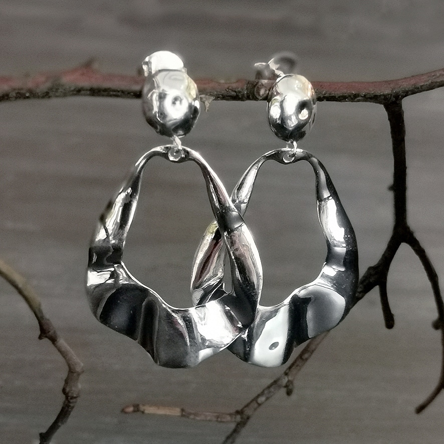 grosse Ohranhänger in organischer Form Silber 925 von Argento Furioso zum Verschliessen mit Hinterteil Breite 3.2 cm, Länge 5.2 cm