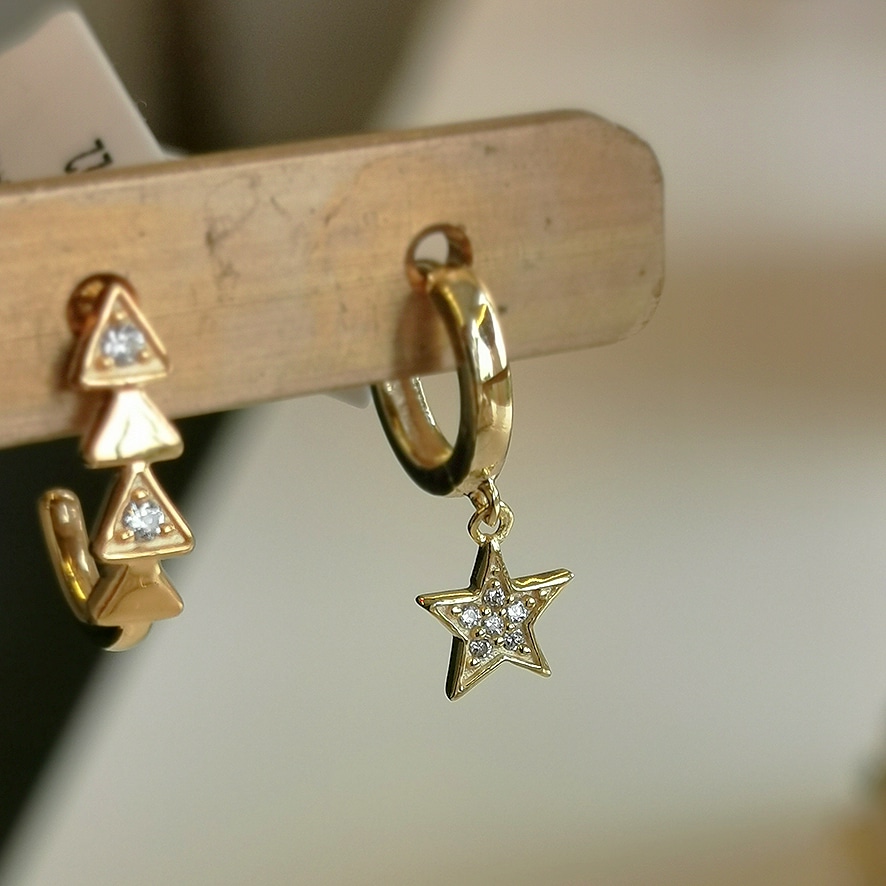 Ohrringli (Paar) zum Aufklappen Anhänger Stern mit Zirkonia Silber vergoldet von Argento Furioso Kreolen-Durchmesser 1 cm Länge mit Stern 2 cm