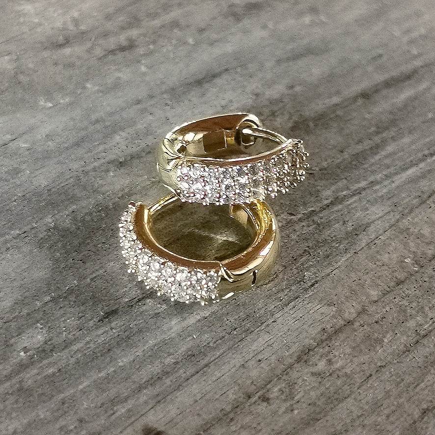 kleine Ohrringe zum Aufklappen mit vielen Zirkonia-Steinchen Silber vergoldet von Argento Furioso Durchmesser 1 cm