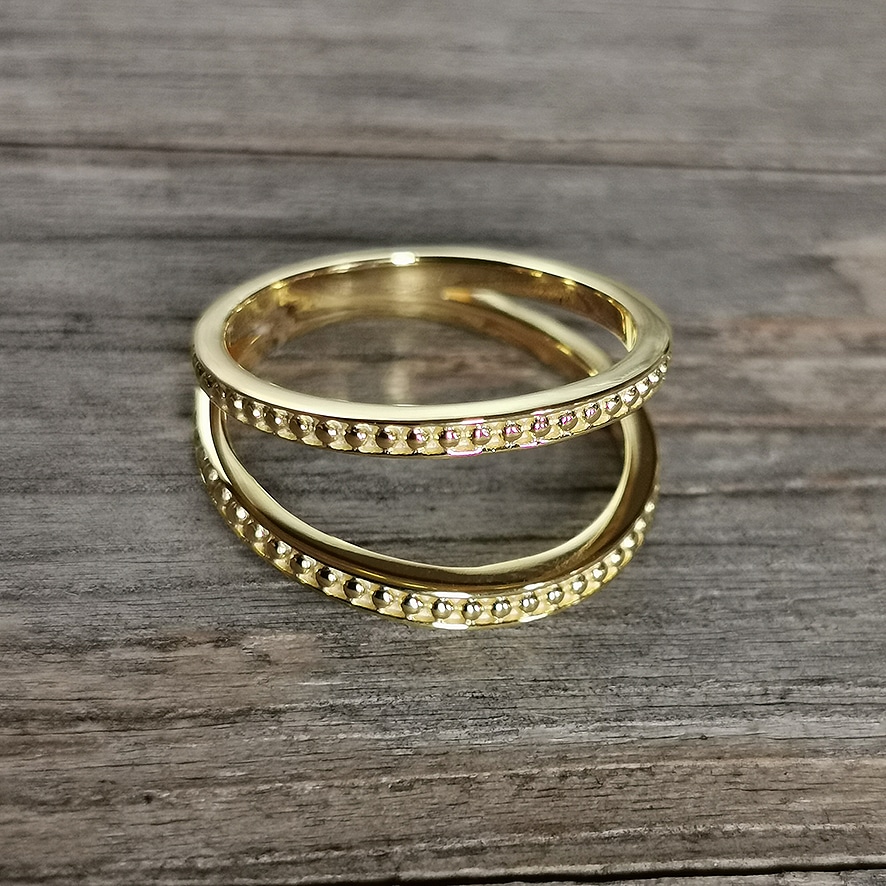 Ring doppelt gepunktet Silber vergoldet von Argento Furioso Breite 9 mm in verschiedenen Grössen erhältlich