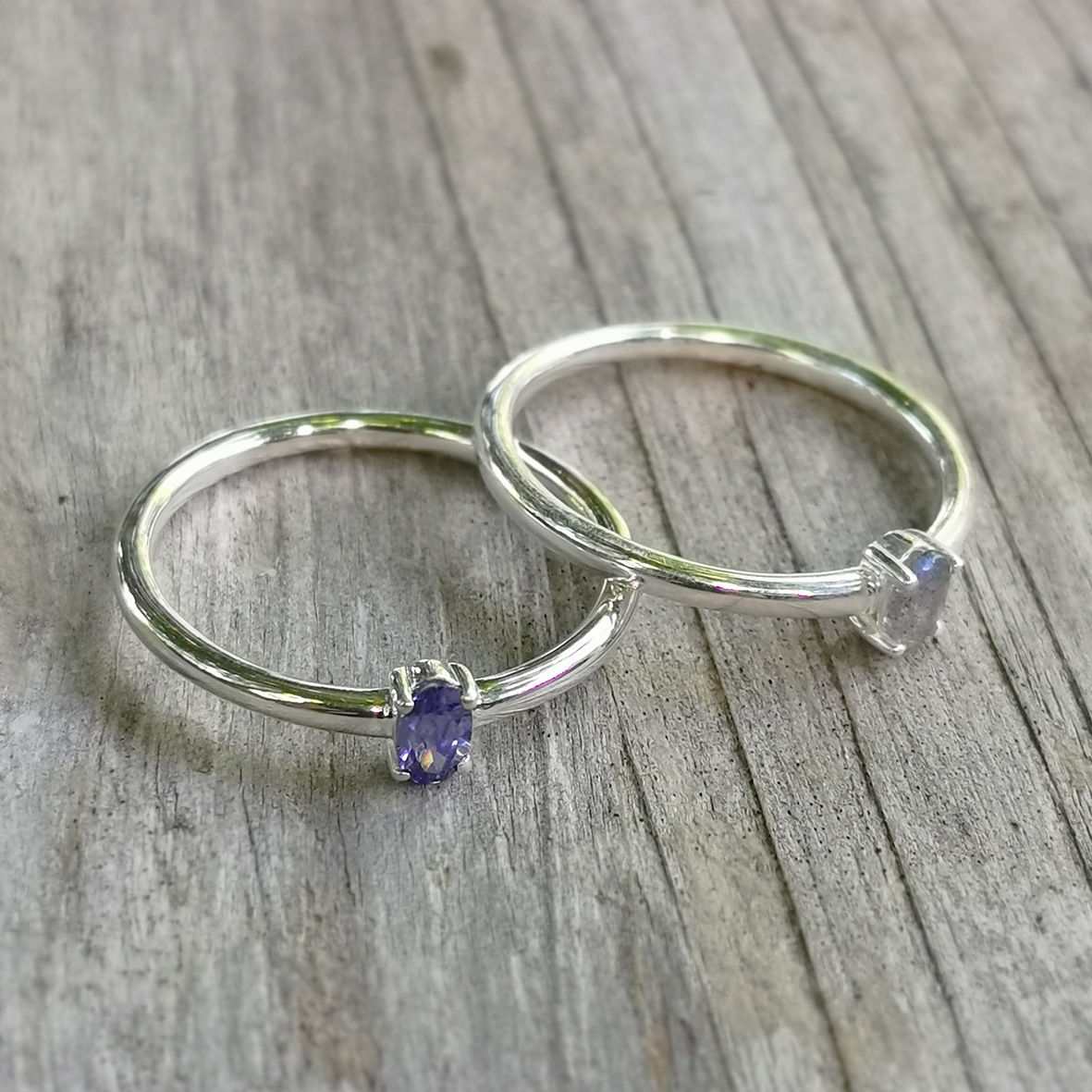 erhältlich mit violett-blauem Zirkonia (Ringgrössen 52 & 56 & 58) und Labradorit (Grösse 58)
