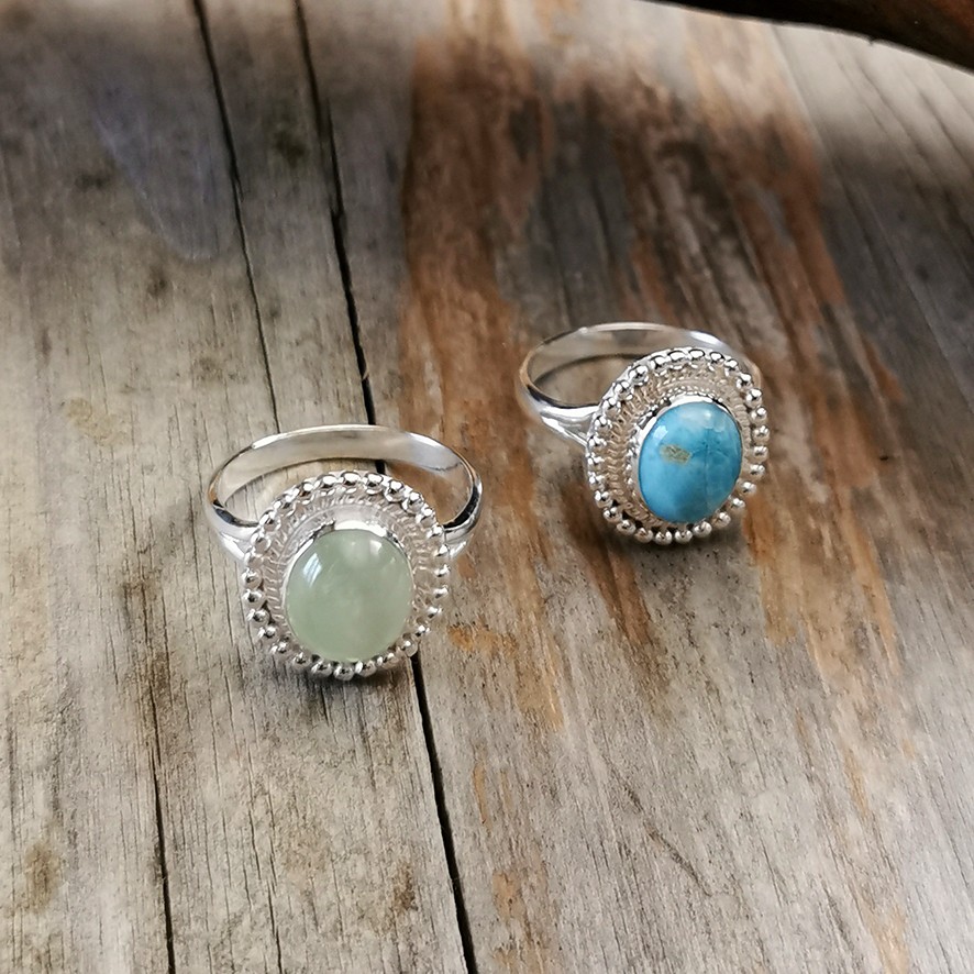 Ring oval mit gemustertem Rand Silber 925 von Argento Furioso Masse mit Rand: 1.3 x 1.5 cm erhältlich mit Larimar (Grössen 52, 54)