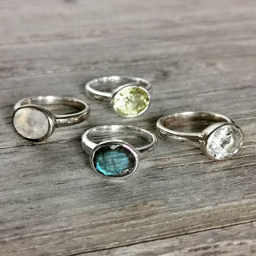 Ring mit ovalem facettiertem Edelstein Silber 925 von Argento Furioso Steingrösse 9 x 11 mm erhältlich mit Mondstein (Grösse 58) und Lemon Quarz (Gr. 58)