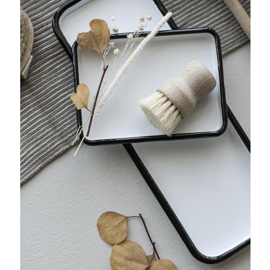 längliches Tablett aus Emaille weiss mit schwarzem Rand dekorativ für Wohnzimmer, Bad oder Küche 12.7 x 2 x 35 cm