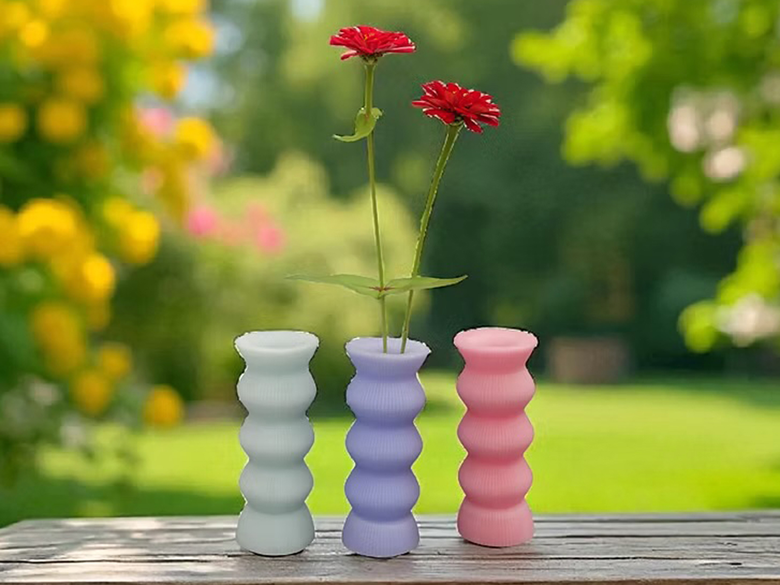 grosse Vase aus Wachs mit Rillen in drei Farben erhältlich: Lila, Rosa, Türkis Höhe: 18 cm Schweizer Handarbeit von kitschi Pflegehinweis: nicht mit warmem Wasser waschen, nicht in die pralle Sonne stellen